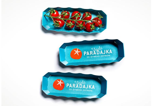 輕輕地畫(huà)出番茄圖案,臉上帶著微笑。紅色和黃色番茄的組合吸引了消費(fèi)者的注意,并配以閃亮的藍(lán)綠色背景。連同三條小波浪線,這些波浪線指的是周?chē)膷u嶼和用于番茄種植的河流附近的地?zé)崴J聦?shí)上,這個(gè)包裝的水藍(lán)色匹配和標(biāo)志是整個(gè)包裝的亮點(diǎn)。
